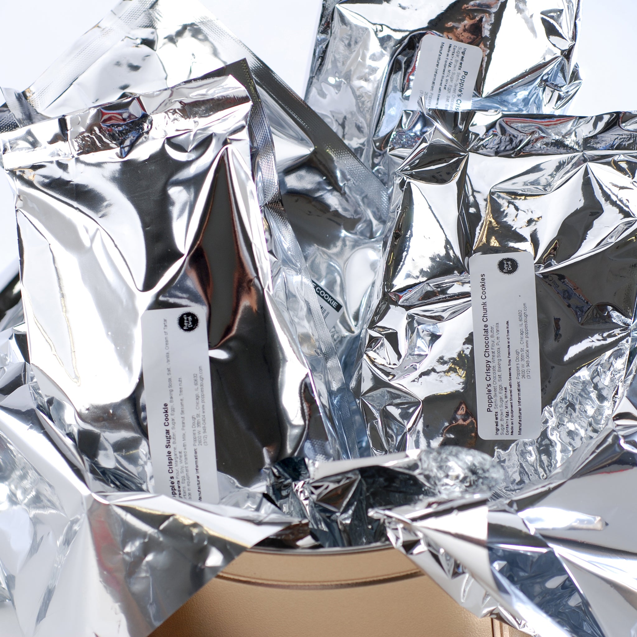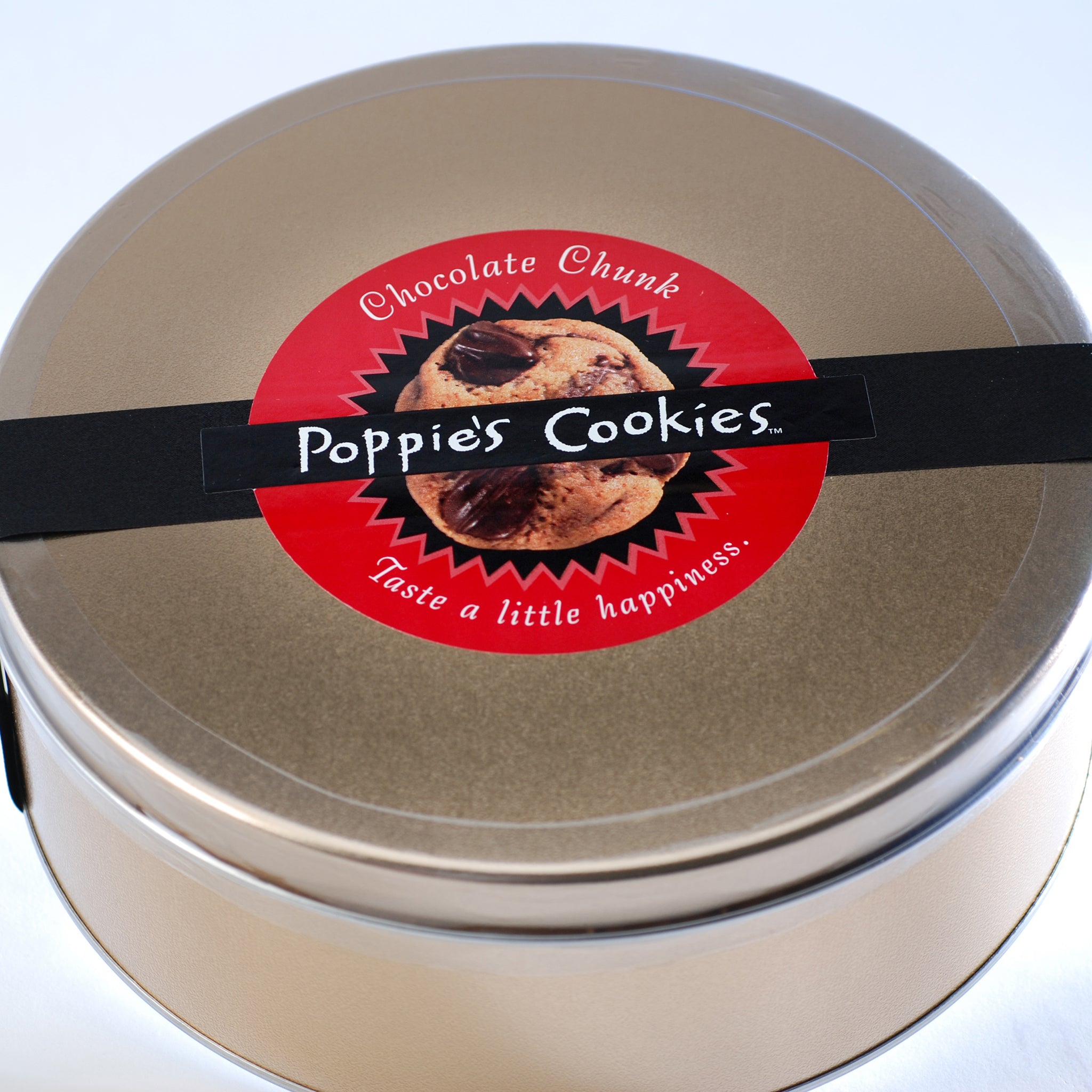 Poppie's Dough Gourmet Crispy Butter Cookies 2 LB Gift Tin. Assorted with 2 of our best selling flavors. Chocolate Chunk and Cowboy Thundercluster. Poppie's Cookies are crispy crunchy mini cookies made with Chocolate Chunks, and 5 different kinds of chocolate in the Cowboy Thundercluster. This Gift Tin makes a wonderful gift any time or occasion. 4 total bags or 32oz of cookies.