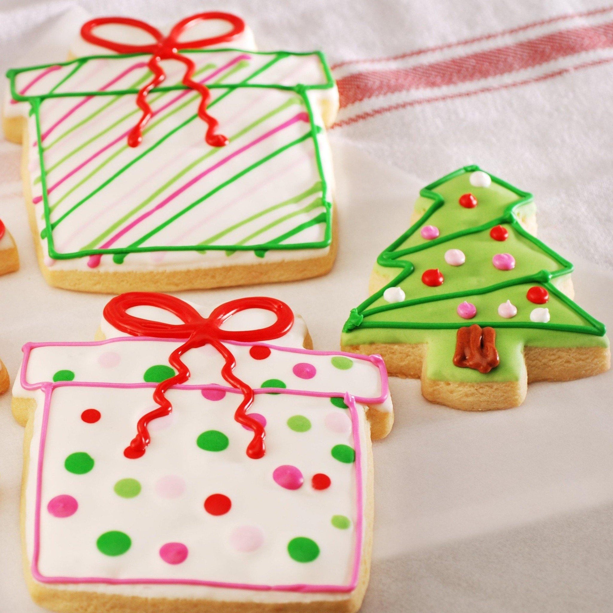 Poppie's Cut-Out Cookies are the perfect stocking stuffers! Made with our signature buttery shortbread dough, each cookie is hand decorated with a jolly royal icing design.